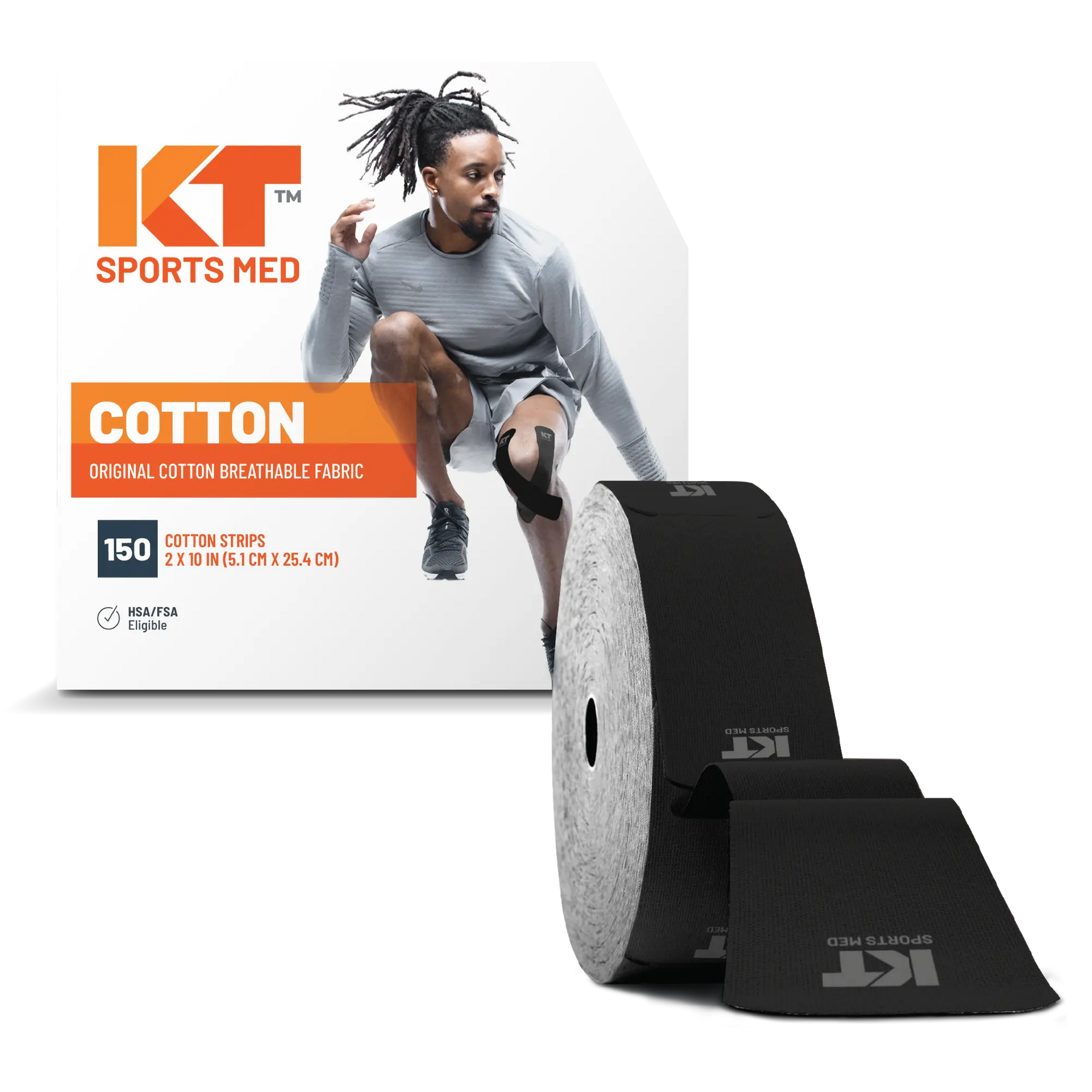 KT Tape® Original is pre-cut and ready to apply right out of the box. Pre-cut strips have rounded corners which help to prevent the corners from catching on clothing or the edges fraying. Each roll contains 150 pre-cut strips that are 10 inches long and 2 inches wide.